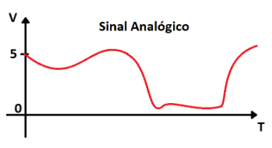 Diferente dos digitais, os sensores analógicos possuem um sinal de tensão contínuo e podem assumir qualquer valor em seu sinal de saída, que se altera ao longo do tempo. Temos como medidas analógicas grandezas físicas como velocidade, pressão, tensão, deslocamento e outros.